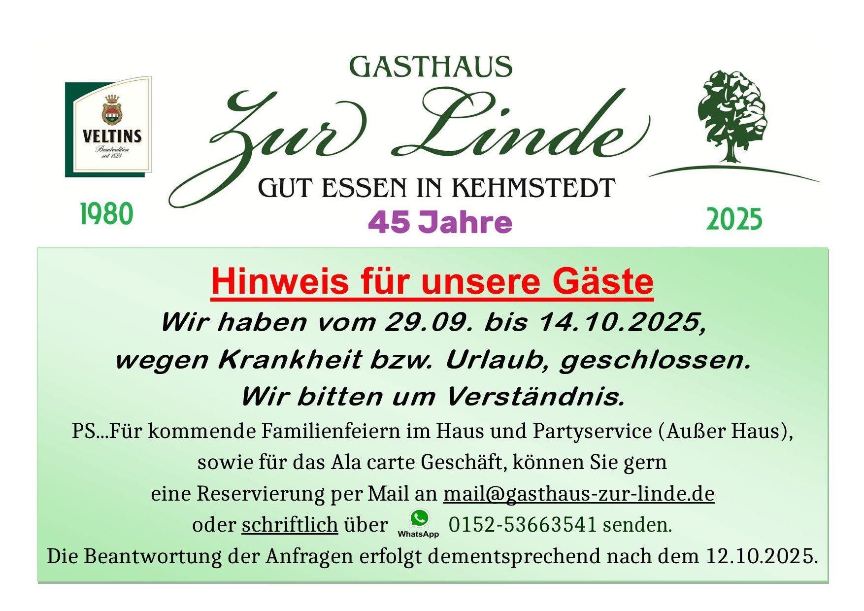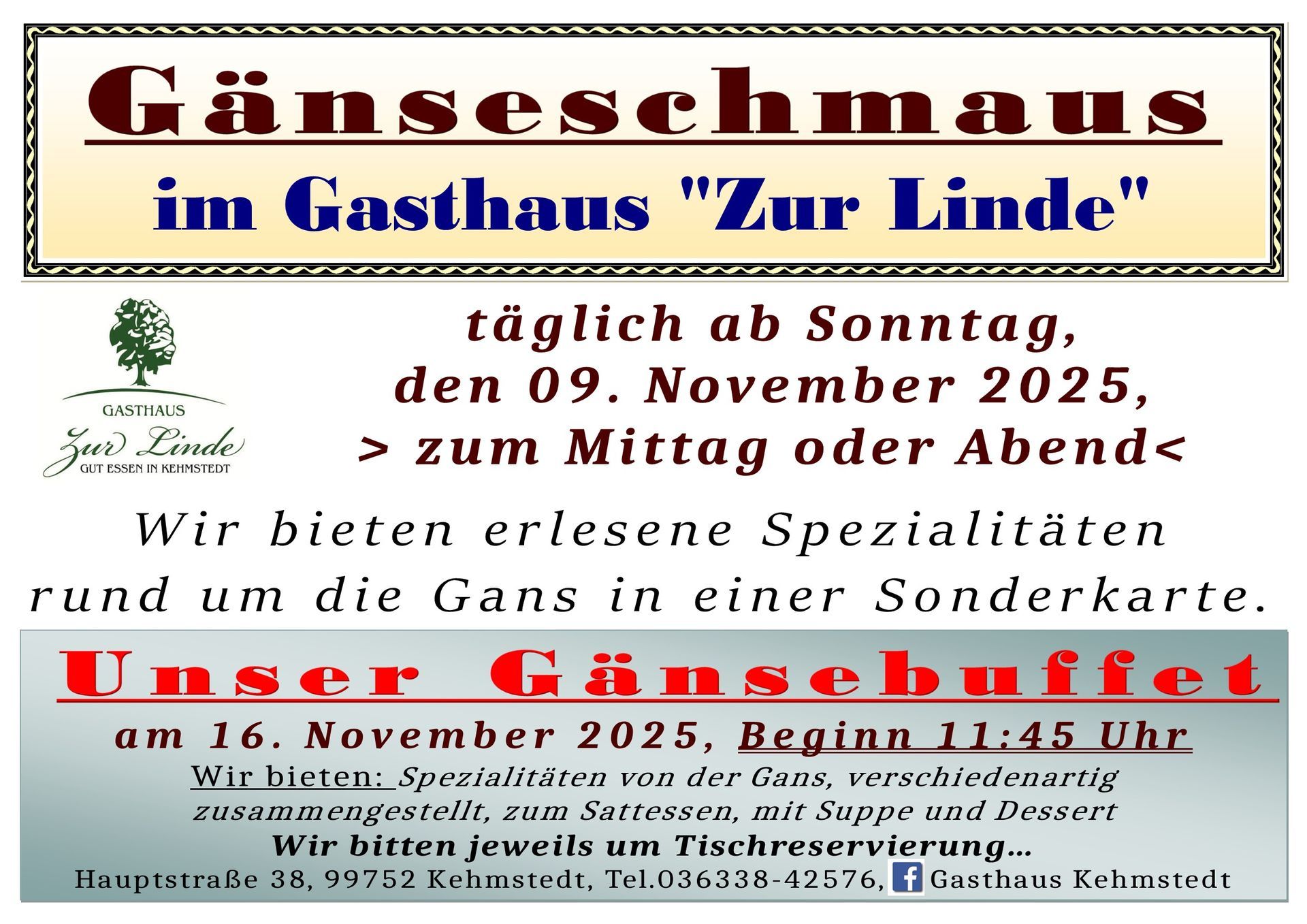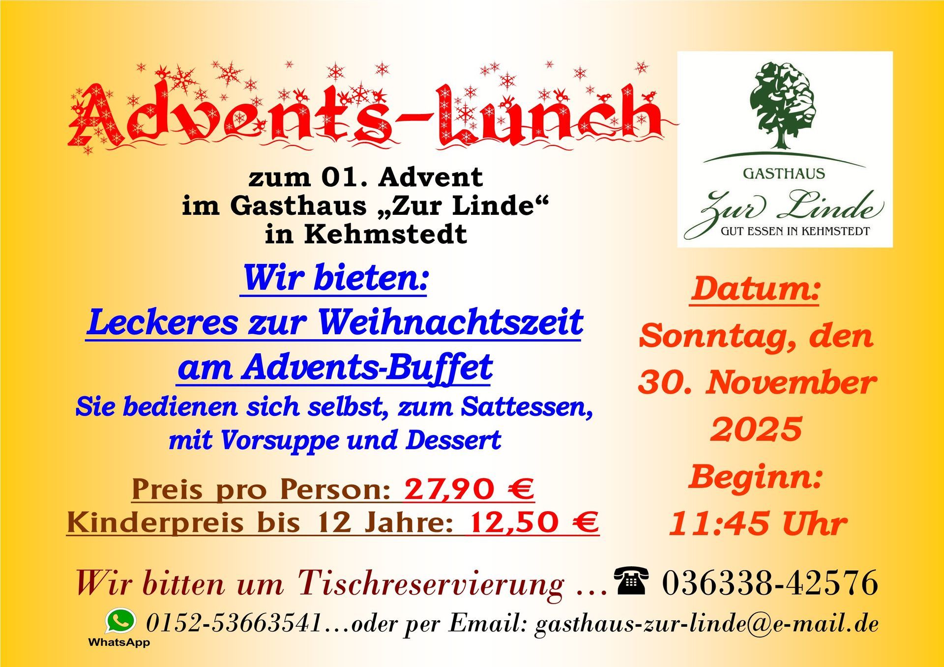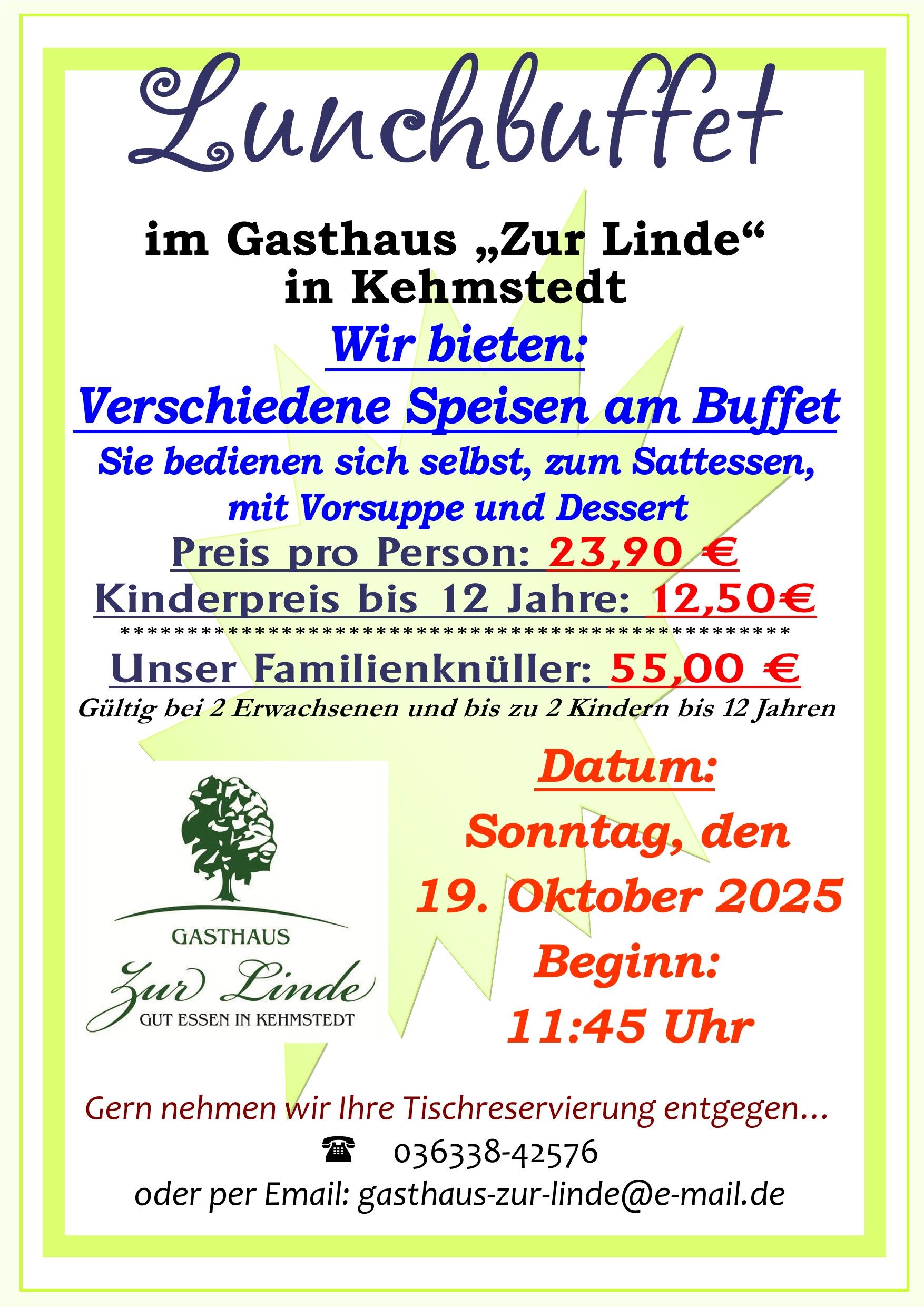 Wir empfehlen Euch zu jedem Buffet eine rechtzeitige Tischreservierung